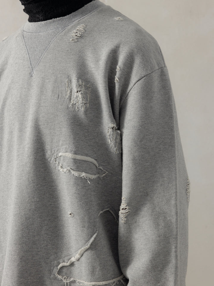 DOUBLE V DESTROYED SWEATER - GREY