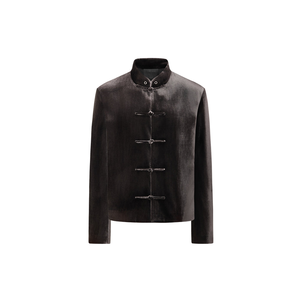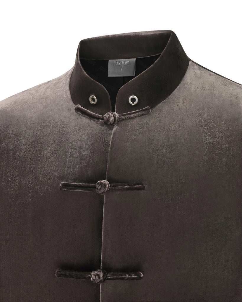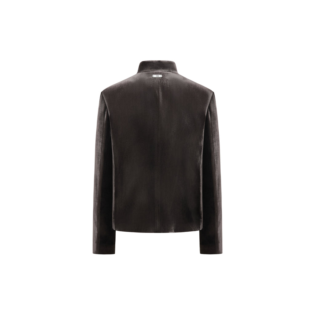 [RESET] VELVET STAND-COLLAR JACKET - DARK BROWN