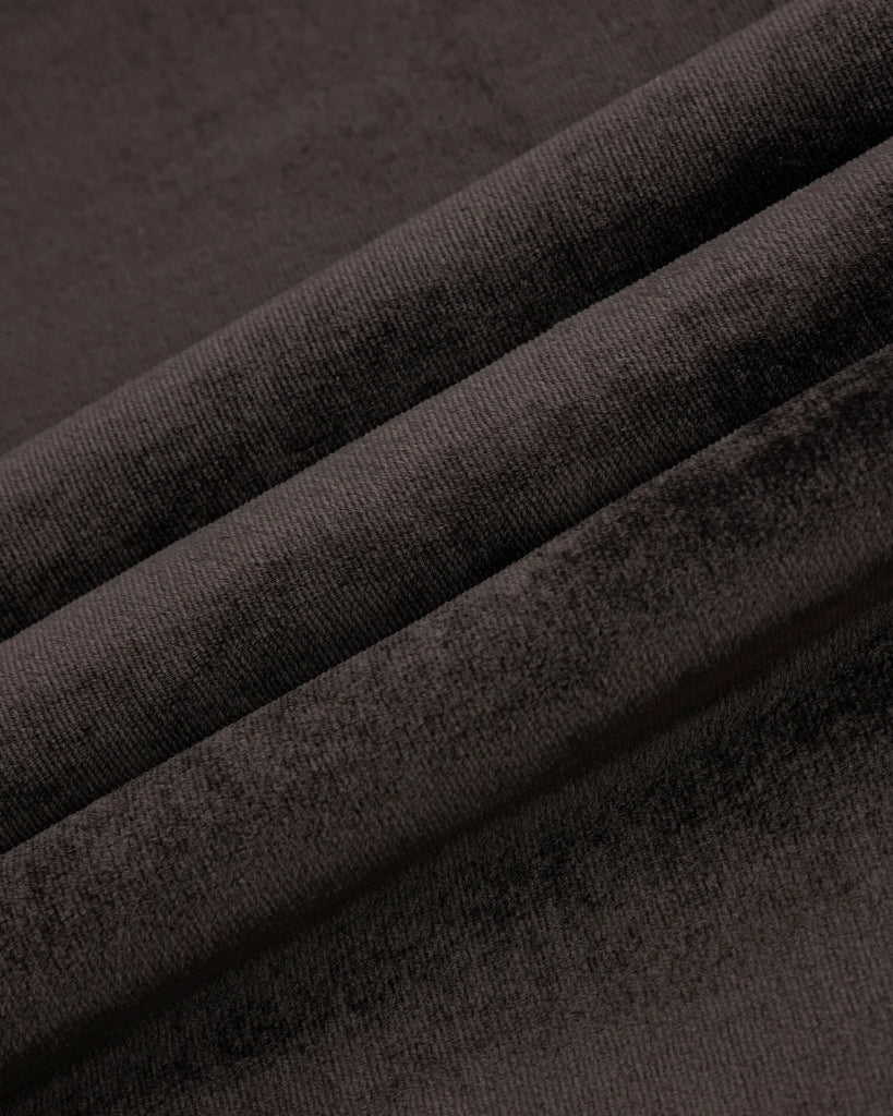 This piece is crafted from velvet. Velvet is a delicate, light-sensitive fabric. Variations in colour under different lighting and slight pile compression from folding are natural characteristics of high-end velvet.